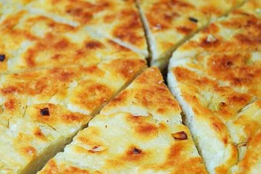 2. Lấy một trong những viên bột, lăn nó càng mỏng càng tốt, thoa dầu nấu đều, rắc muối và hành lá xắt nhỏ