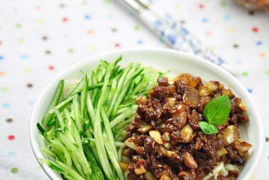 400g bột mì, đậu phộng tím tươi, 1 quả trứng100g nước, 3g muối, thịt bò, hành tây, đường, nước sốt ngọtHạt đậu tương, dán đậu đen lên men Laoganma, Tinh chất gà, Dưa chuột