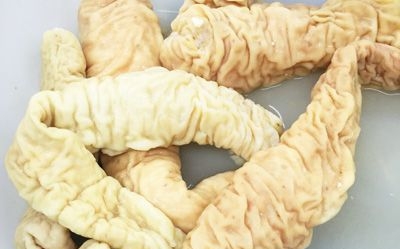 4. Đặt ruột mỡ vào nước sôi và nấu kỹ, loại bỏ và đặt sang một bên. nó