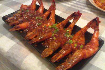 6. Đặt những con tôm vừa chiên vào nồi để nếm. Sau khoảng 1 phút, đặt tôm rang lên đĩa, đổ súp còn lại vào chậu lên tôm và rắc một ít hành lá, và nhiệm vụ được thực hiện.