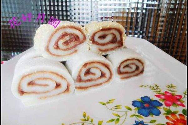 8. Cuộn nó lên và cắt nó thành các phần. Nếu bạn thích ăn hạt mè, bạn có thể nhúng một ít nước xuống da bên ngoài của bánh lạnh và sau đó cuộn nó lên một lớp hạt mè trắng.