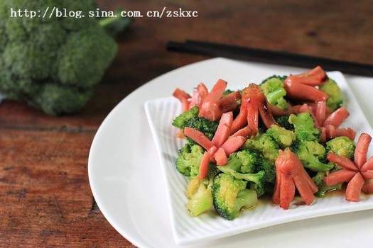 1. Bông cải xanh và tỏi là hoàn hảo, và xào cũng rất ngon. 2. Khi xúc xích giòn được đặt trong chảo dầu, nó sẽ “nở” nhanh chóng và súp lơ cũng được nấu chín, vì vậy hành động phải nhanh, chỉ xào một chút, nhưng nó sẽ mất hương vị nếu nó quá nấu chín.