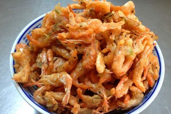 500g tôm sông tươi, bột 30g, tinh bột 60gHành tây, gừng, bột năm gia vị, bột tiêu trắng, muối, phương pháp công thức:
