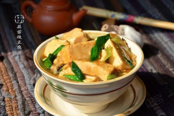 500 gram đậu phụ, 50 gram mầm tỏi, lượng hành tây và gừng thích hợp và gừng thích hợpLượng muối thích hợp, 10 ml nước tương, 1 gram đường, một ít tinh chất gà và một lượng tinh bột nước thích hợpLượng dầu mè thích hợp
