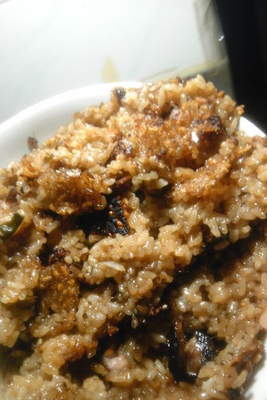1. Ngâm gạo nếp, nấm và bạn đã mua trong nước trong nửa giờ.