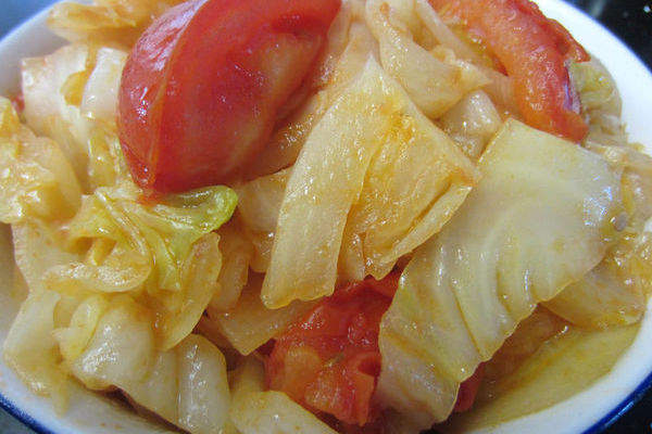 nửa pound bắp cải 1 hành tây 2 cà chua cà chua 3 muỗng nước sốt, 2 muỗng canh dầu nấu, một lượng muối thích hợp