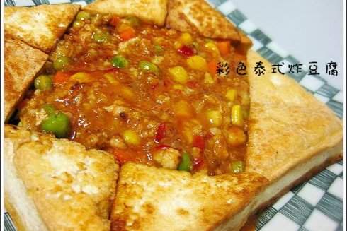 3. Cắt đậu phụ thành hình tam giác, đặt dầu vào chảo và chiên đậu phụ trên lửa nhỏ cho đến khi da chuyển sang màu nâu vàng.