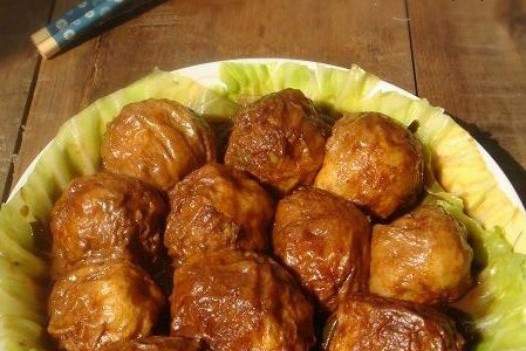 Việc nén gluten vào dạ dày có thể làm cho nó tốt hơn để lấp đầy nó bằng một ít thịt làm đầy. Đừng ép gluten quá mạnh khi nhấn. Bởi vì không có món ăn nào khác ở nhà để lót đĩa, bạn cũng không thể chọn bắp cải, và nó sẽ trông đẹp hơn với các loại rau nhỏ trên đĩa.