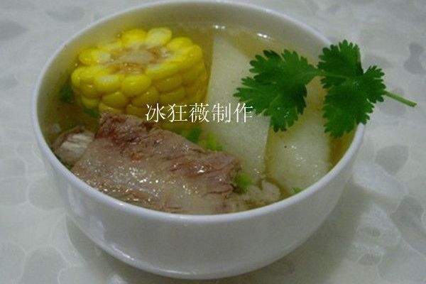 5. Thêm nước vào nồi hầm điện và thêm xương sườn luộc, hành lá, gừng và rượu nấu ăn.
