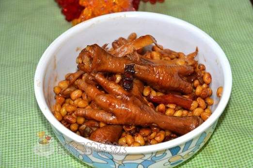 1. Ngâm đậu nành trước một đêm, rửa chân gà để sử dụng sau, gừng xào, tỏi, ớt khô, hồi sao và quế