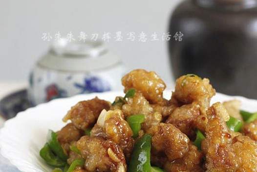 9. Sau khi chiên lần đầu tiên, bật lửa vừa cao để đun sôi dầu vào nồi mà không có tiếng nước nổ. Đổ tất cả các phần thịt đã được chiên trong nửa phút để chiên. Tại thời điểm này, phần da bên ngoài của phần thịt rất giòn và rất mềm bên trong. Rắc vào lúc nàyThêm muối và hạt tiêu là sườn heo; Nếu bạn sử dụng ớt xanh với làn da dày, tốt nhất là đặt ớt xanh vào dầu và trượt chúng để có thể nấu chín ớt xanh. Tôi đã sử dụng làn da rất mỏng, vì vậy tôi đã bỏ qua bước này