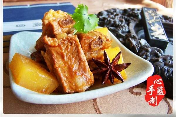 1.1. Cắt xương sườn thành các miếng nhỏ, rửa các loại gia vị, cắt các lát gừng thành các miếng hình kim cương, bóc tỏi và cắt củ cải trắng thành các miếng