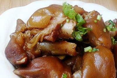 Thành phần rượu một muỗng rượu 2 lợn trotters 3 sao.2 lát lá nguyệt quế 4 lát gừng 1 muỗng nước tương 4 muỗng canh muối 1 muỗng canh muối1 muỗng cà phê tinh chất gà và 2 muỗng cà phê đường