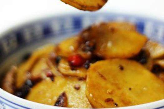 <img alt = "minh họa 4 lát khoai tây khô cay" src = "/uploads/allimg/cxhw150602 Đặt các lát thịt sang một bên, đặt tỏi, gừng và sao hồi vào nồi, và xào cho đến khi hương thơm ra ngoài