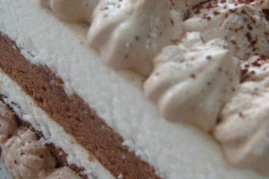 . Đặt lát bánh thứ hai, đổ bột mousse còn lại, lắc khuôn một chút và làm lạnh trong tủ lạnh trong hơn 4 giờ