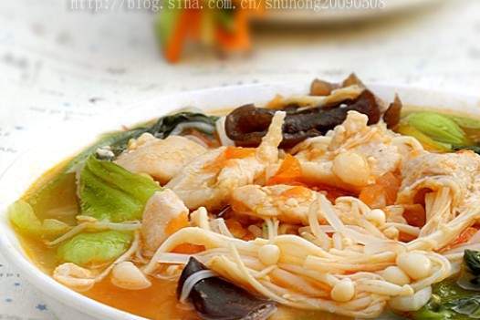 300 gramNấm enoki nấm đậu nành cải cà chua 1 túi nước sốt, lượng hành tây thích hợp, gừng, tỏi, lượng tinh bột thích hợp, 10 gram muối, 5 gram đường