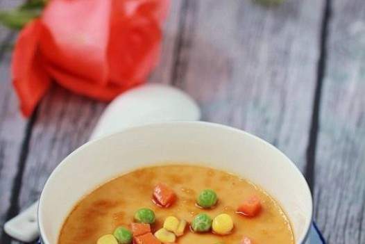 Một quả trứng, nước, đậu xanh, ngôMuối nước sốt đậu nành cà rốt
