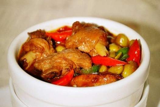 gà cốm xanh và ớtMột ít hạt tiêu xanh thông thường, hạt tiêu, hồi sao, khô ớt Hành tây, gừng, nước tương nhẹ, muối, đườngThành phần Wine