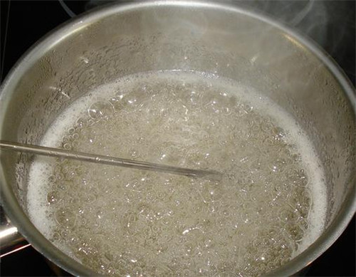 1. Đun sôi nước trên lửa lớn và đổ vào sago.