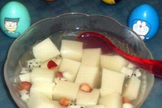 3. Đổ nó vào nồi và đun nhỏ lửa trên nhiệt.Tạo các miếng nhỏ, thêm một số trái cây khi ăn