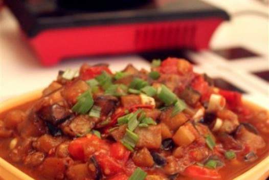 1. Một quả cà tím tròn lớn, cắt hai quả cà chua thành những miếng nhỏ, cắt năm tép tỏi, cắt hành lá thành miếng, rửa cà tím và cắt nó thành những miếng nhỏ, rắc một lớp muối mỏng và để nó ngồi trong hơn 20 phút src = “/tải lên/allimg/cxhw150602/przprnn3rxt.jpg”/>
