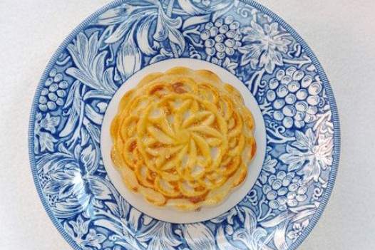 p> 9. Đặt nó vào khuôn và nhấn ra khỏi bánh trăng trống. Sử dụng nó trong khuôn để rắc bột bánh để tránh dính (bột gạo nếp nấu chín) trước. Xịt một ít nước lên bề mặt bánh đã chuẩn bị và nướng nó trong lò ở 170 độ trong 5 phút.