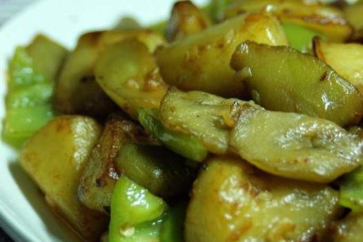 3.2 Đầu tiên đặt khoai tây vào chảo dầu nóng cho đến khi vàng và thơm, sau đó thêm cà tím vào chiên mềm và triệt để (cà tím không có hương vị làm se)