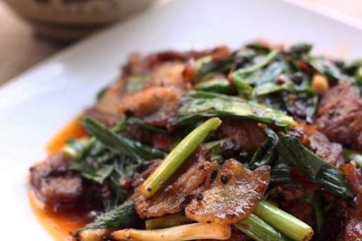 300 gram thịt lợn với da, 150 gram mầm tỏi, 1 muỗng canh đậu pixian (25 gram)20 gram đậu đen lên men đen, 1 miếng gừng cũ, một ít đường