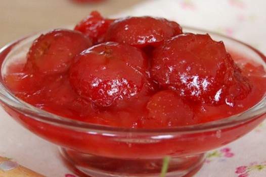 1. Rửa trái cây màu đỏ, loại bỏ thân cây, cắt làm đôi từ giữa và loại bỏ hạt của quả đỏ