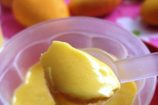100g xoài xay nhuyễn, sữa 70ml, kem nhẹ 30ml1 miếng bột gelatin ch Donkey, lượng đường thích hợp
