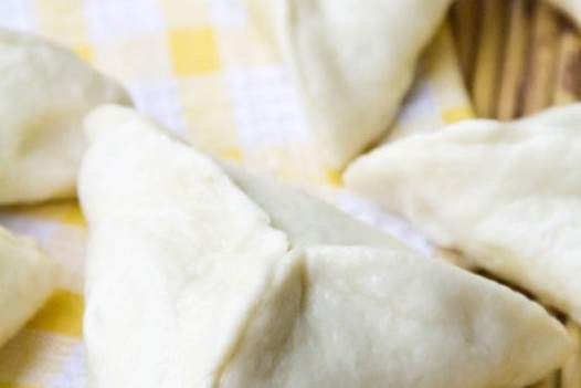 4. Lấy một bột nhỏ và cuộn nó thành bột, bọc nó trong chất làm đầy đường nâu và tạo thành một hình tam giác (Hình 7 và Hình 8)