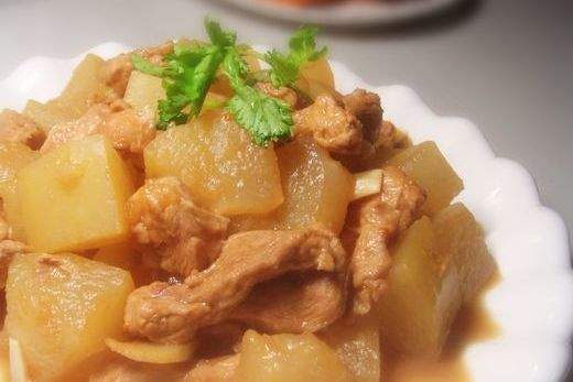 Minh họa công thức làm thịt lợn om với dưa mùa đông