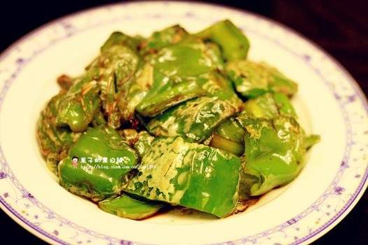 1.1 Đổ dầu vào nồi, nó nhiều hơn bình thường để xào. Khi dầu nóng 70%, thêm spinellia và tỏi băm. Sau đó đặt ớt xanh và xào, thêm một ít muối, xào thêm một vài lần nữa và bạn sẽ thấy da hổ.