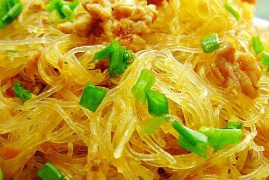 4. Thêm vermicelli, xào trong khoảng một phút và thêm một số tinh chất gà. Nó đã sẵn sàng để được phục vụ và rắc một số hành lá