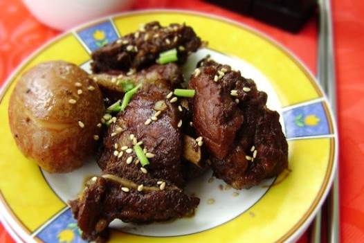 3. Xương sườn và xào đều, đổ vào các nguyên liệu, thêm sao hồi, quế, hành lá, miếng gừng, lá nguyệt Giữ súp dày hơn.