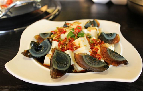 2. Cắt trứng dứa và rắc chúng lên trên đậu phụ.