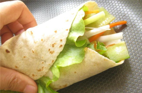 4. Cắt thịt gà, giăm bông, trà khô và cần tây thành các mảnh vụn, thêm dầu vào nồi, đổ vào rau vụn, xào đều. Khi bạn muốn ăn, bọc bánh và lăn nó vào các loại rau vụn và sau đó ăn nó.