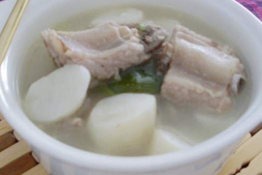 4. Thêm khoai mỡ, bật lửa cao, đun sôi súp, thêm muối và đun nhỏ lửa trên lửa nhỏ trong nửa giờ cho đến khi xương sườn giòn và thối. Tắt lửa, chỉ