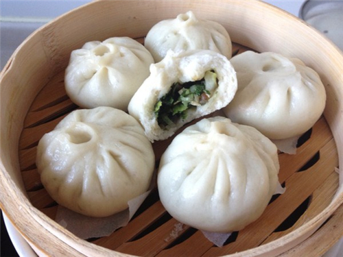 3. Xoay bột thành các dải và chọn nó thành một khoảng 75 gram mỗi loại. Sau đó nhấn trống vào một làn da tròn với độ dày ở giữa, một khu vực xung quanh mỏng và đường kính khoảng 8 cm. Đặt 25 gram làm đầy ở giữa, chèn ép nó và đóng nó, sau đó làm một chiếc bánh chay xanh. Đặt những chiếc bánh chay xanh vào một chiếc hấp, để nó ngồi trong 1 đến 2 phút, sau đó đặt nó lên một nồi nước sôi và hấp nó trên lửa cao trong 10 phút.
