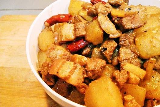 2. Đun nóng chảo và làm nóng dầu, xào gừng và tép tỏi trước, đổ bụng thịt lợn và xào cho đến khi nó hơiNó hơi nâu. Bạn có thể thêm một chút nước sốt đậu nành, sau đó làm nóng nước (ít nhất là nếu củ cải không bị ngập), đặt cây hồi, quế và ớt khô vào đó và đun sôi nó. Sau khi đun sôi, đặt củ cải thành miếng và nấu nó. Sau khi sôi lại, tắt lửa. Đã gần hai mươi phút. Khi nước gần như khô, nó sẽ mặn và nhẹ. Nếu nó nhẹ, hãy thêm một ít muối và nêm nó ~~~