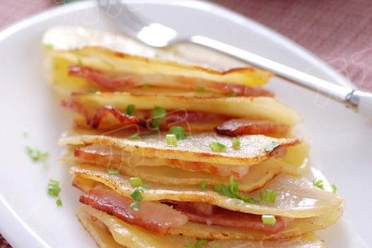 2 khoai tây, 5 lát thịt xông khói, muối spinellia bộtDầu ô liu