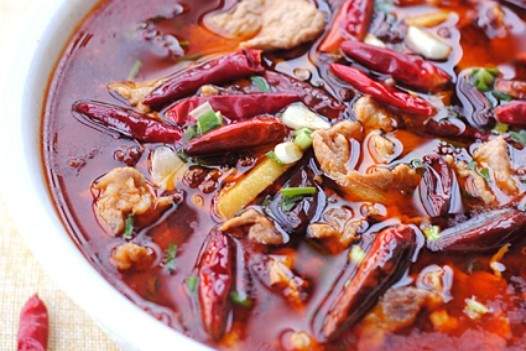 2.21 Làm nóng dầu trong chảo, thêm hạt tiêu và hạt tiêu đỏ khô, chiên cho đến khi nâu và đỏ, lấy nó ra để sử dụng