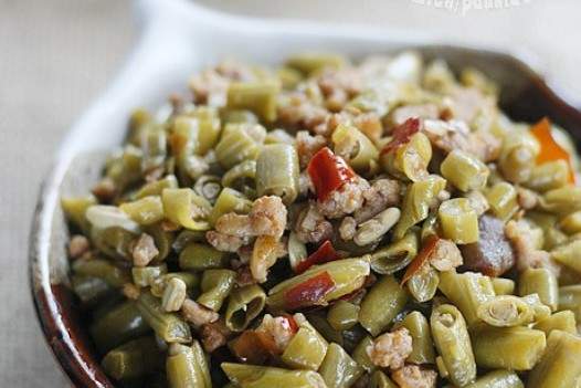 6. Sau khi thịt băm được khử màu, thêm đậu chua và xào. Tại thời điểm này, đổ rượu và nước tương nhẹ, và thêm đường vào mùa. Để làm cho điều này 7. Không cần thêm muối vào món ăn. Đậu chua và nước sốt cay pixian ban đầu là cay