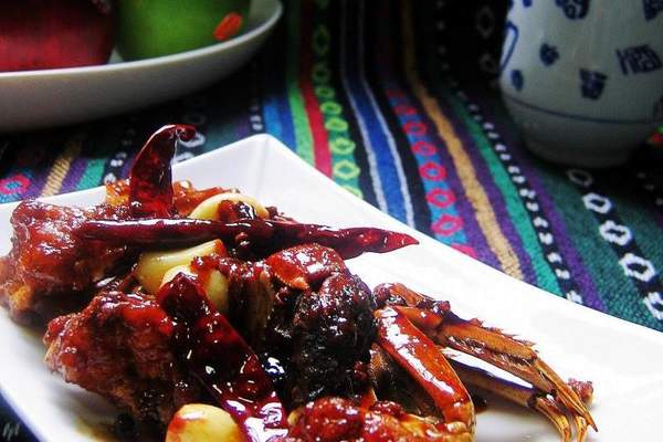 1. Cua rửa, chuẩn bị gừng, tỏi, hạt tiêu và ớt khô. nó Cua vồ trên tinh bột khô. nó Làm nóng nồi và đổ vào dầu, thêm cua và chiên cho đến 8 tuổi và lấy nó ra. nó Khuấy trong nồi với gừng, tỏi, hạt tiêu và ớt khô.