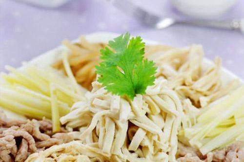 2Chồi tre rất nấu chín, bắp cải ngâm vụn, thịt lợn vụn, thịt gà vụn và gừng mềm. nó Lấy một bát nhỏ và đặt nước tương nhẹ.